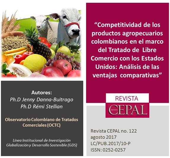 Todo el trabajo investigativo que se ha venido adelantando en el OCTC desde el año 2014, se ha materializado en publicaciones de alto impacto, como lo es el artículo en mención. En este, los autores Jenny Paola Danna-Buitrago y Rémi Stellian, analizan la competitividad de los productos agropecuarios colombianos con respecto a los estadounidenses, con el fin de establecer en qué medida el tratado de libre comercio entre los dos países representa un riesgo o una oportunidad para dichos productos. Para ello calcularon las ventajas comparativas reveladas de Colombia en la zona de intercambios que este país conforma con los Estados Unidos, según el método del Centro de Estudios Prospectivos y de Información Internacional (CEPII), para 60 grupos de la Clasificación Uniforme para el Comercio Internacional (CUCI) de productos agropecuarios y sus derivados.